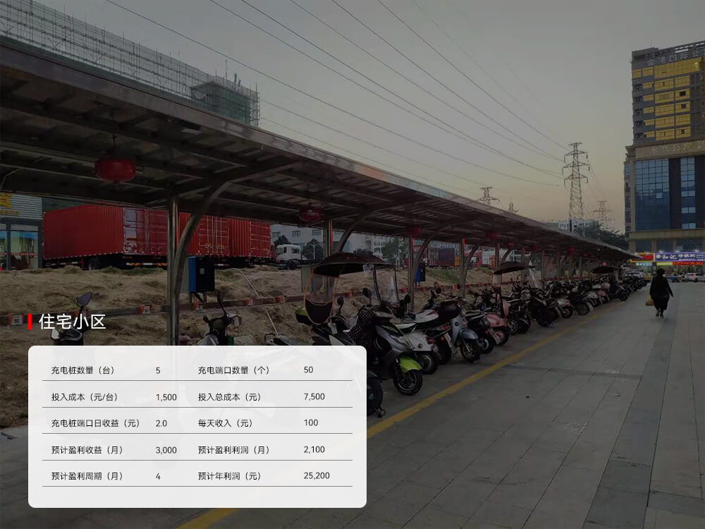 在住宅密集區(qū)域,可以建設(shè)在市政道路,為周邊用戶(hù)提供安全充電設(shè)備,及時(shí)電具備充滿(mǎn)電后自動(dòng)斷電的功能,有效降低過(guò)度充電對(duì)電池產(chǎn)生的損害,保護(hù)電池使用壽命,為車(chē)主提供集中充電,提高了用戶(hù)充電體驗(yàn)的同時(shí),管理難度也減小。